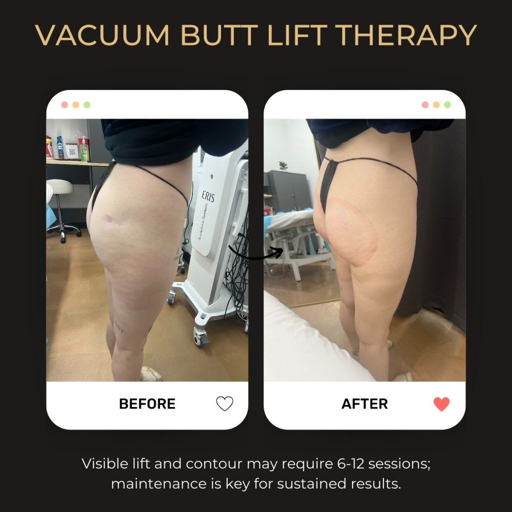 Enhance and lift your curves with our Vacuum Butt Lift Therapy. This non-surgical treatment uses advanced techniques to shape and enhance the buttocks, giving you a fuller, more contoured look.